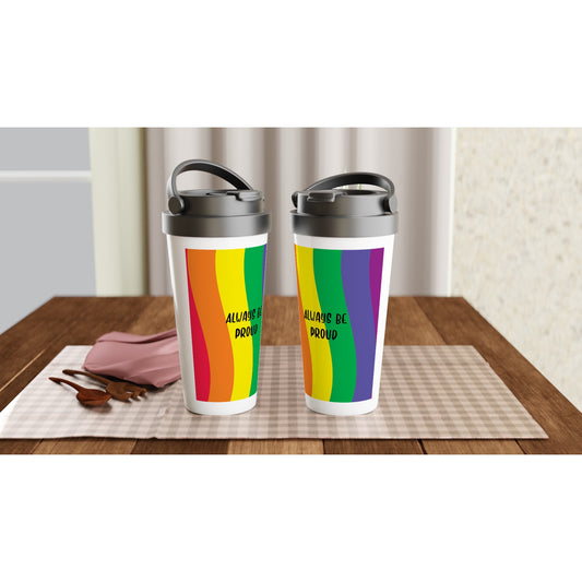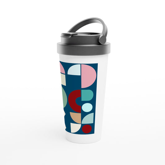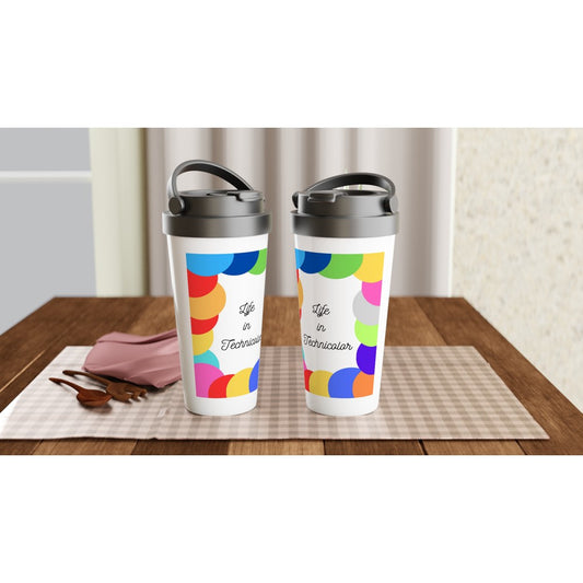 Mug de voyage blanc en acier inoxydable - Modèle technicolor