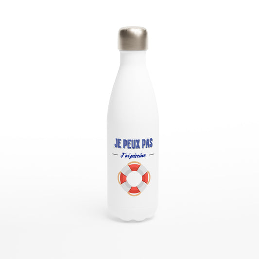 Bouteille d'eau blanche en acier inoxydable - "j'ai piscine"