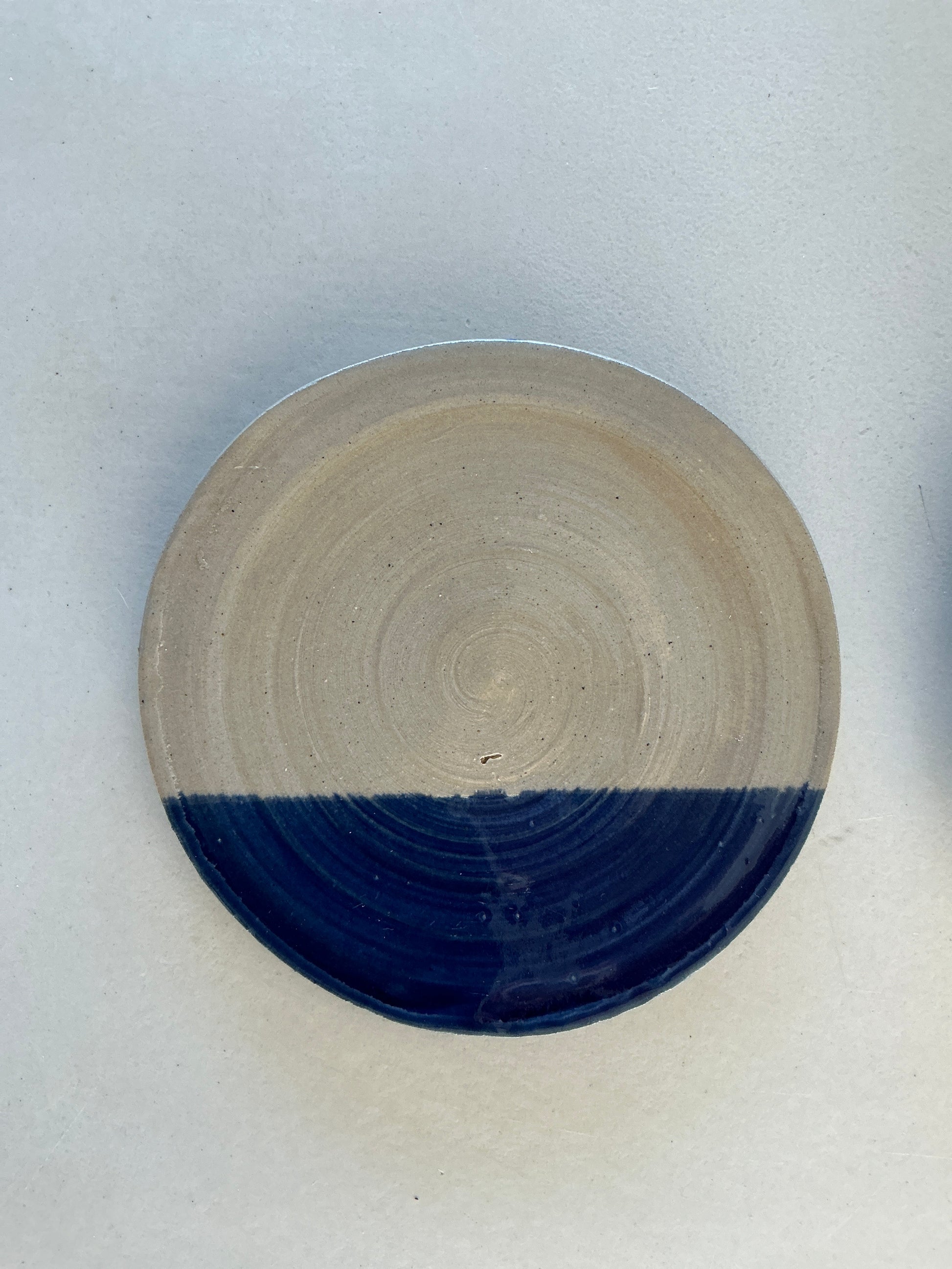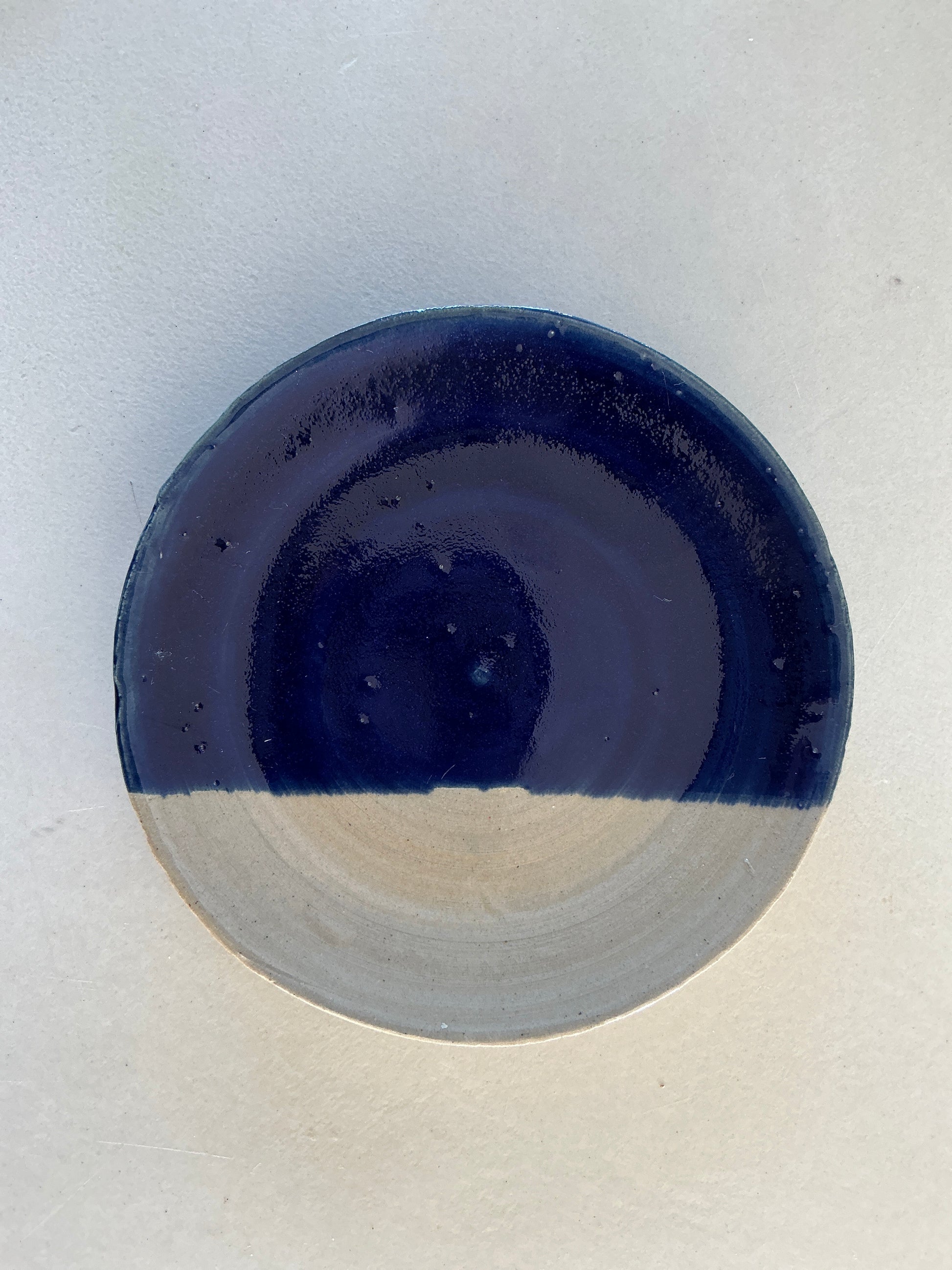 2 Assiettes asymétriques émaillées en Bleu Klein et émail transparent