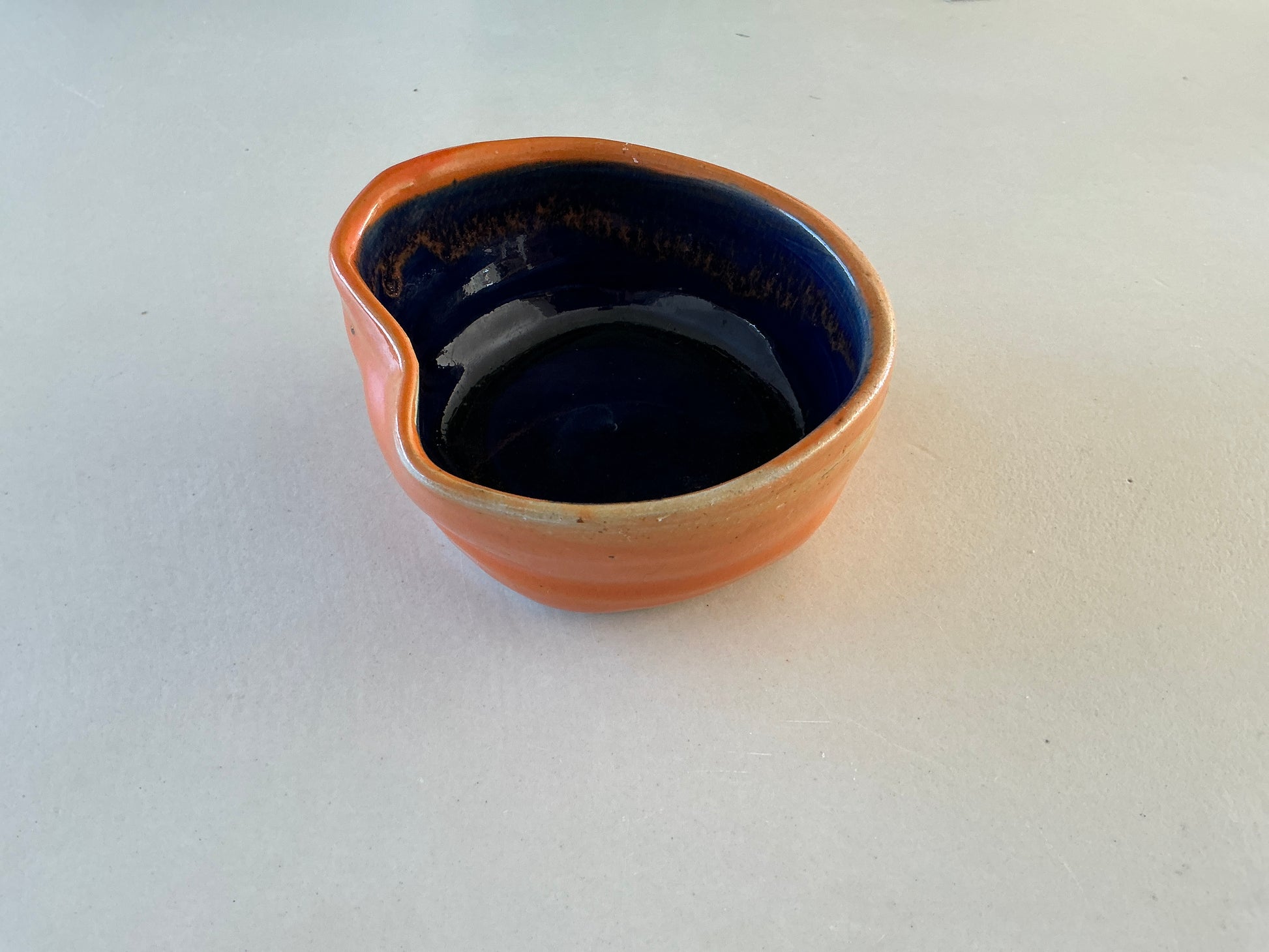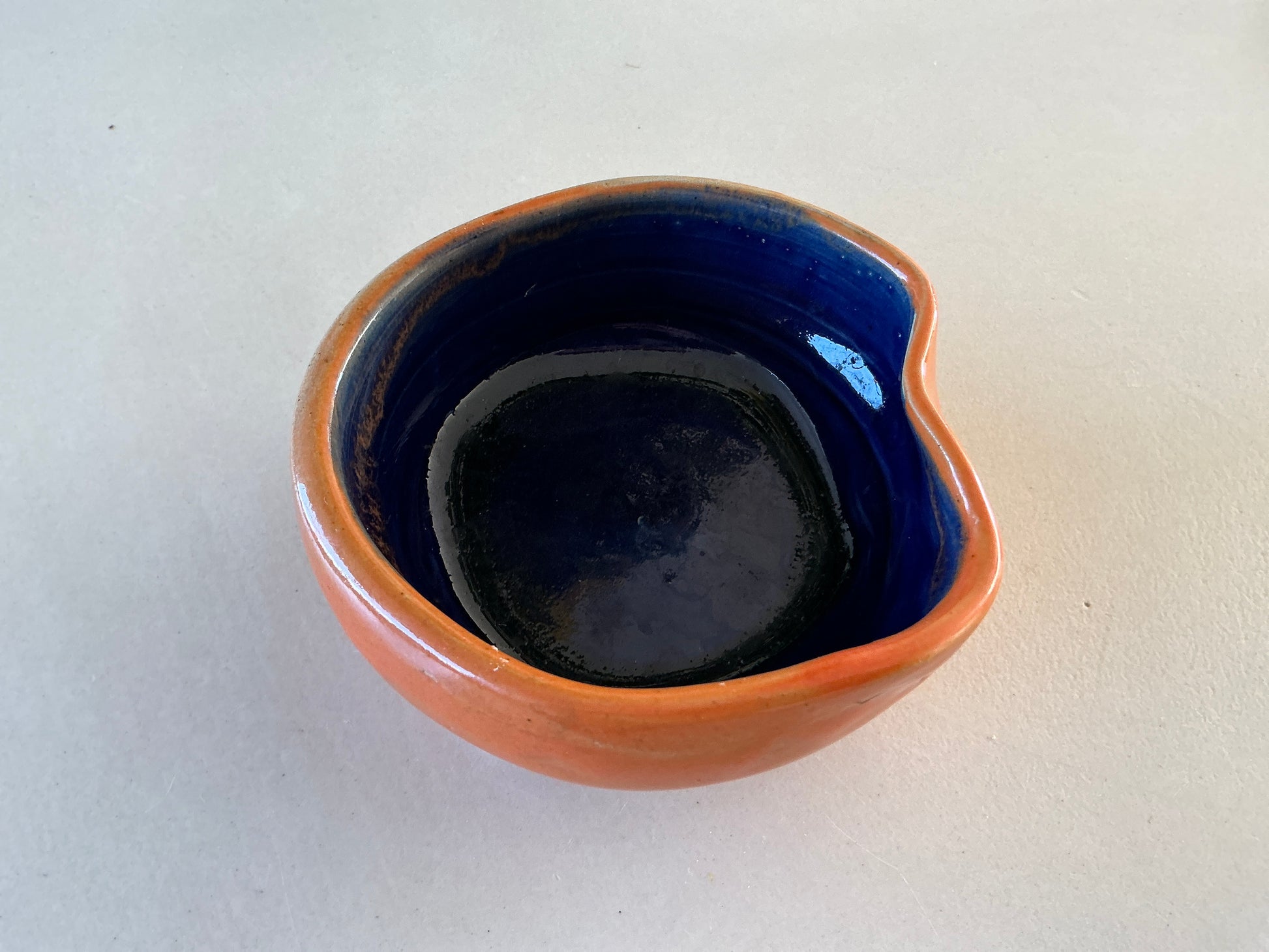 Bol pour apéritif dînatoire, émaillé en orange et bleu Klein.