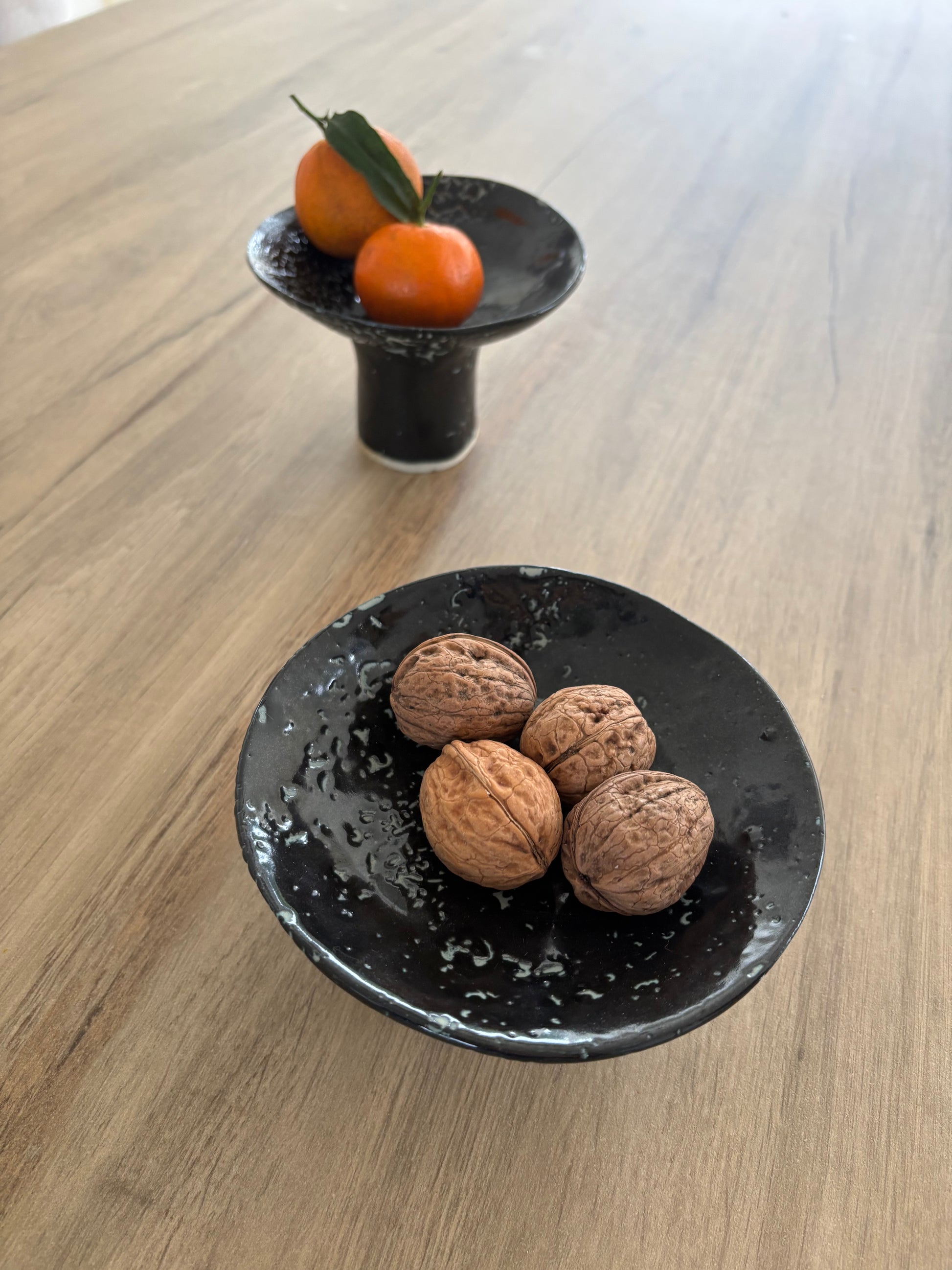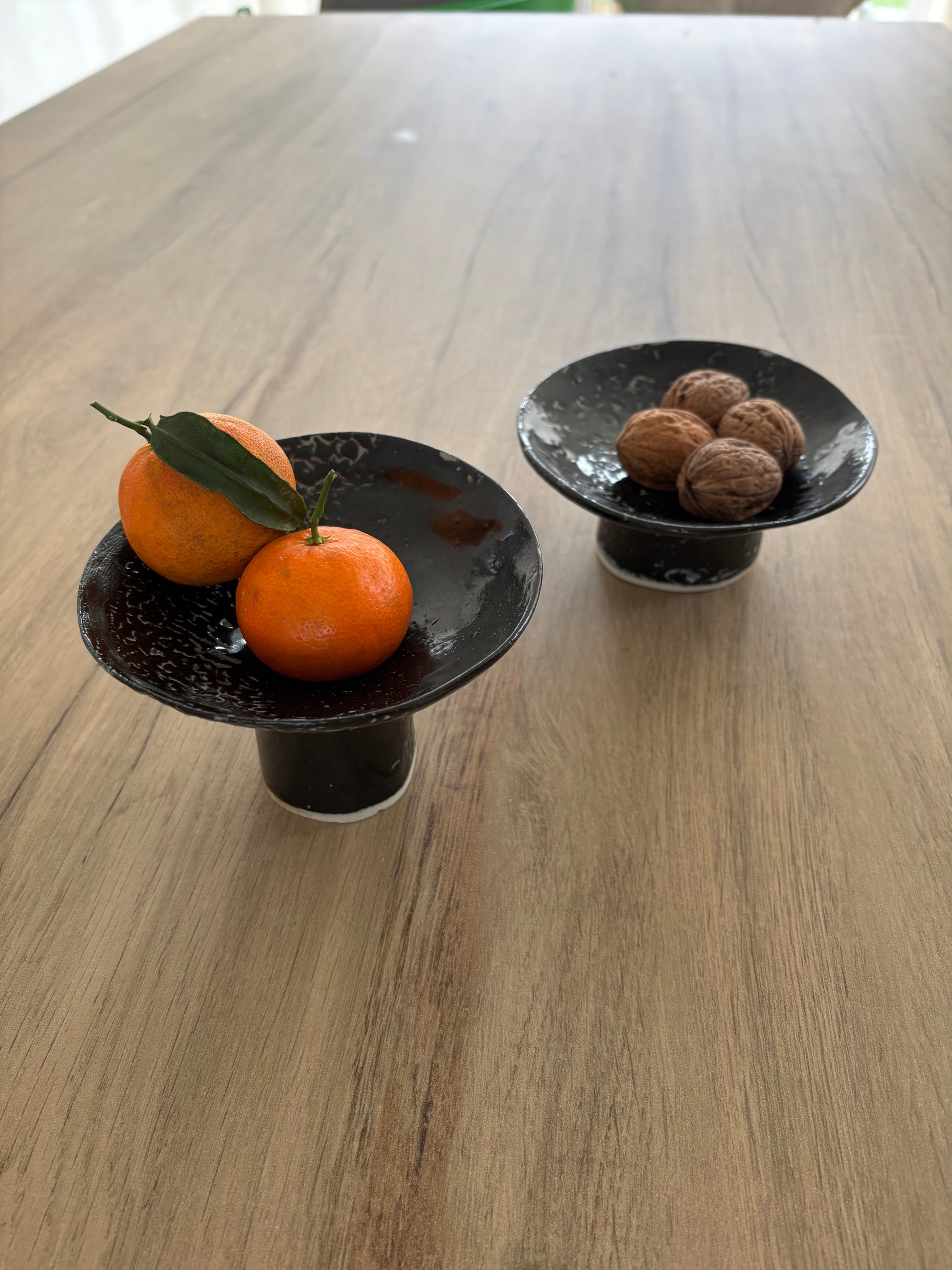Élégance et engagement réunis avec ces deux coupelles de service artisanales.