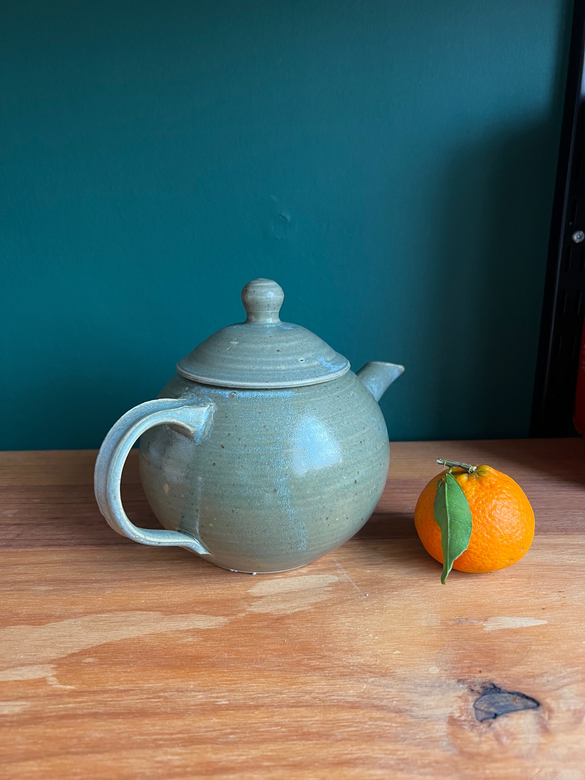 Son émail vert moucheté révèle des nuances douces qui subliment les courbes de la pièce. Chaque détail, du bouton de couvercle a la anse tirée, est pensé pour une utilisation quotidienne, durable et chaleureuse.